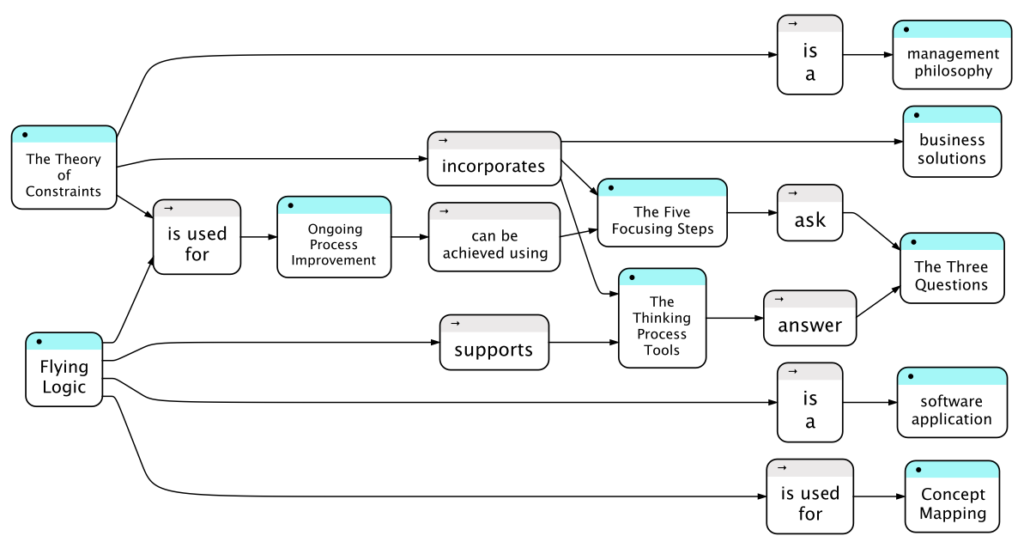 Concepts Maps start with one or more main concepts at the root, and relations are used between concepts to connect in supporting concepts. The main rule when building Concepts Maps is that each Concept→Relation→Concept step should be readable as a complete sentence. Additional relevant concepts can be added in any order, and connected in as many places as they are used.