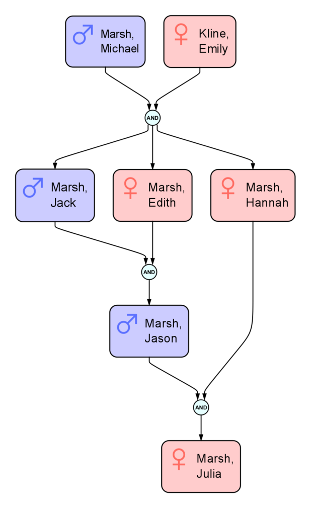In this example, there’s both a case of incest between siblings, and an aunt/nephew relationship. There are other possible pairings, however they will function in the same way as the ones above do.