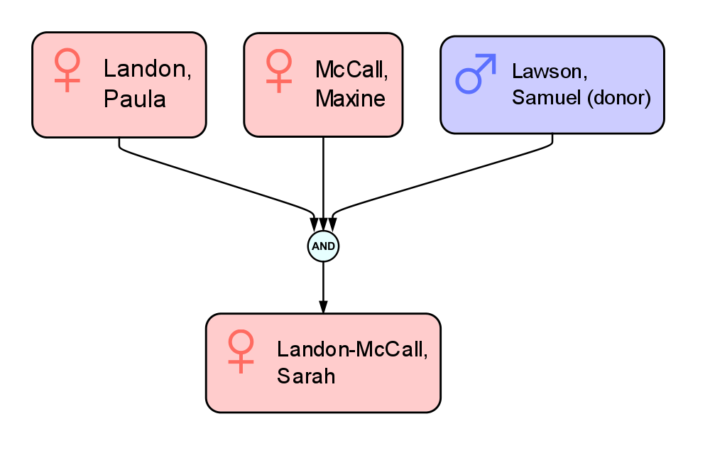 It may not be clear what’s going on when more than two parents are charted. To sidestep this, you can always include clarifying information in your entities.